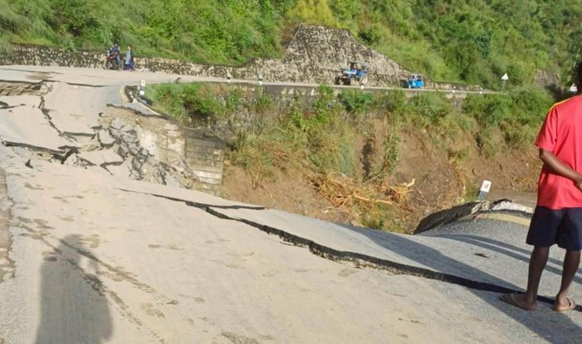 The District Police Office Kavrepalanchok said around 1,900 metres of the road on the Vhakunde-Nepalthok stretch of the highway has been damaged at 14 locations.