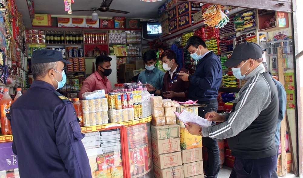 Two stores were visited at Madhyapur Thimi municipality-3 of Bhaktapur where the team found various inedible items. Unsafe storage and date-expired goods were also found by the monitoring team.