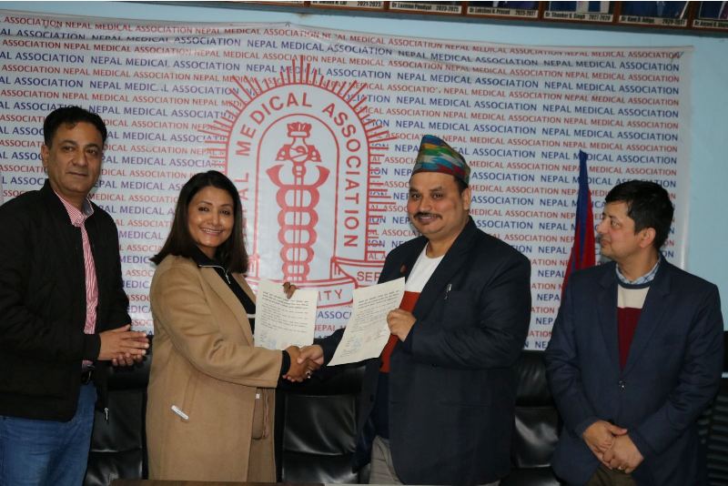 Nepal Medical Association President Dr Anil Bikram Karki and Sathsathai organization President Prajita Karki signed the memorandum of understanding on behalf of their respective organizations.
