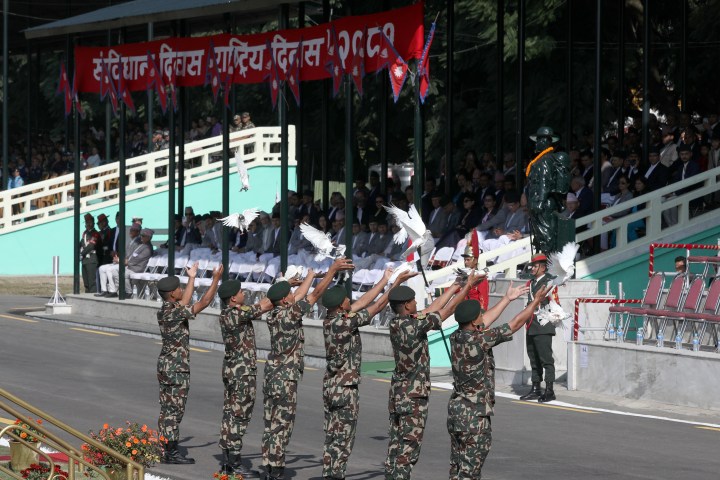The ceremony featured a march-past by personnel from the Nepal Army, Nepal Police, and Armed Police Force. Additionally, various organisations presented a cultural parade.