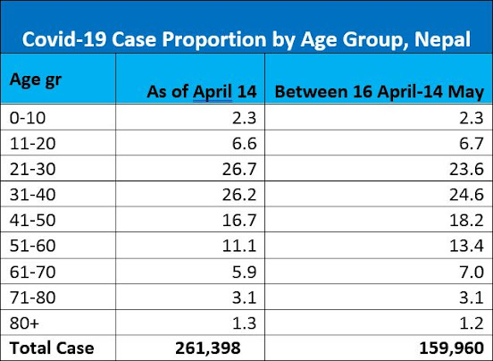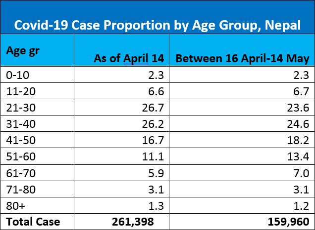In a situation akin to health system collapse, the underprepared health facilities were largely unable to meet the rapidly increasing demand. Very unfortunately, valuable lives were lost due to the overwhelmed hospitals that were overrun by the swelling number of patients with severe symptoms. People were suffocating to death due to a lack of oxygen. In this write-up, we try to quantify this surge and make an effort to provide some details on how the outbreak has unfolded during the month of Baisakh [April 14-May 14]. We want to emphasize as we write this that this is far from over and Nepal needs to continue to remain very vigilant. All data for Nepal included in this write-up are from the Ministry of Health and Population daily updates.