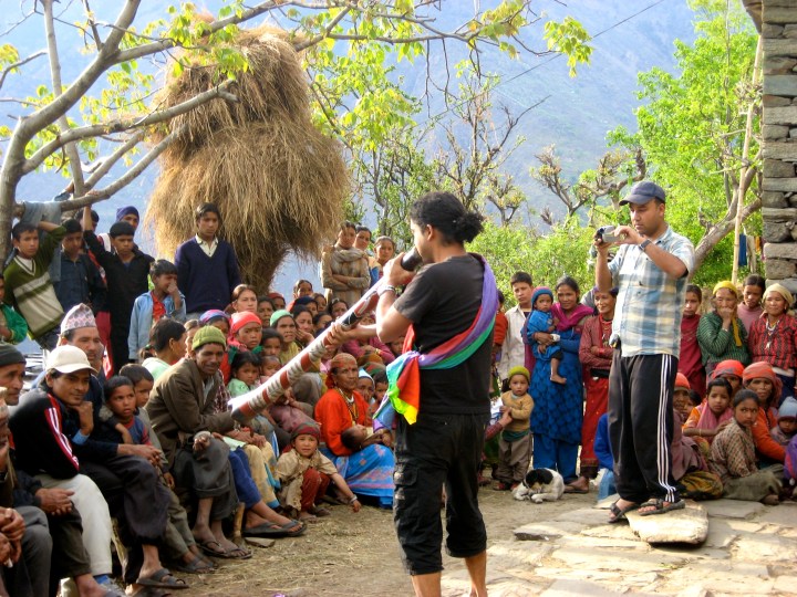 In 2004, two years after leaving his journalism job, Subedi performed a nude art show in Tapoban. When Subedi stripped, got into a stream, and came out crawling along the rocks stream-side, leeches were mounting his naked body in the process, he recalls. There was a window at a distance on a hill by the stream and an enclosure, both of which his team had strategically placed. The intention of the show, according to Subedi, was to make people look at nature with a renewed curiosity. The sight caught people’s eyes and suddenly they raced to where he was, trampling the enclosure, shrieking, even murmuring, following him as he crawled along the rocks. “People normally don’t shy away to look at their neighbors dressing up through their windows. We were trying to invite this voyeurism into nature,” he remarks, “The fact is that arousal is a bare truth and people needed that to be interested in nature in the way they did.”