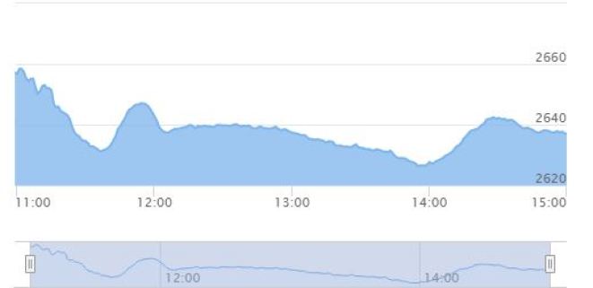 The stock market had registered a decline by 5.09 points on Wednesday to close at 2649.60 points.