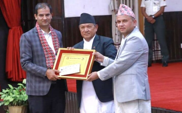 At the anniversary event held at the President’s Office on Sunday, in the presence of President Ram Chandra Paudel, Minister for Communications and Information Technology Prithvi Subba Gurung and Press Council Nepal Chairman Bal Krishna Basnet presented Paudel with a cash prize and a certificate. Paudel also serves as the General Secretary of the Nepal Press Union and is currently the head of the economic bureau at Nagarik Daily.