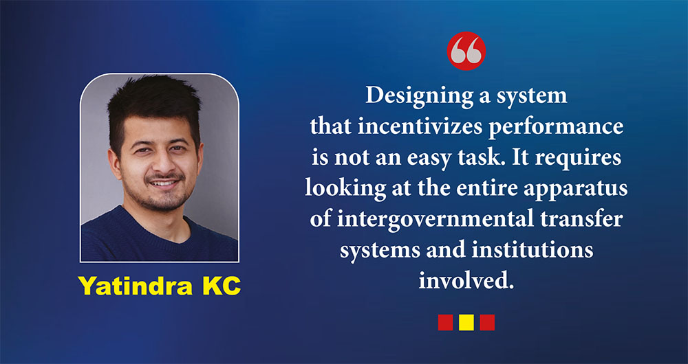 Whether by design or in the lack of a better alternative thereof, the current system of administration of performance-based grants regards all local governments as the same. At least for now, fiscal equalization grants in Nepal are simultaneously looking to achieve three goals–horizontal equalization, vertical equalization and performance incentivization. One must also look at how other grants–such as special and complimentary grants–incentivize the performance of local governments. During the initial days of the intergovernmental transfer system in Nepal, performance incentive function was believed to be better achieved by special, complementary and conditional grants. Yet as time came to pass, incentivizing function found its place in the fiscal equalization grant. It could either be the reluctance of agencies responsible for special, conditional and complimentary grants to do so or the problems of designing systems with imperfect data.