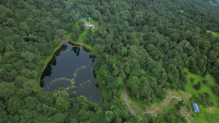 Myagdi: A reflection shot of forest in Peribharani Lake of Annapurna Rural Municipality – 7, Myagdi. People believe that their wishes will be fulfilled by offering prayers at the lake. Photo: RSS Aerial view of Peribharani Lake. Photo: RSS