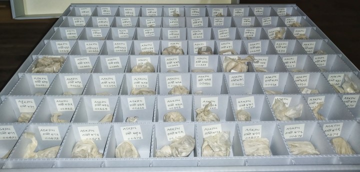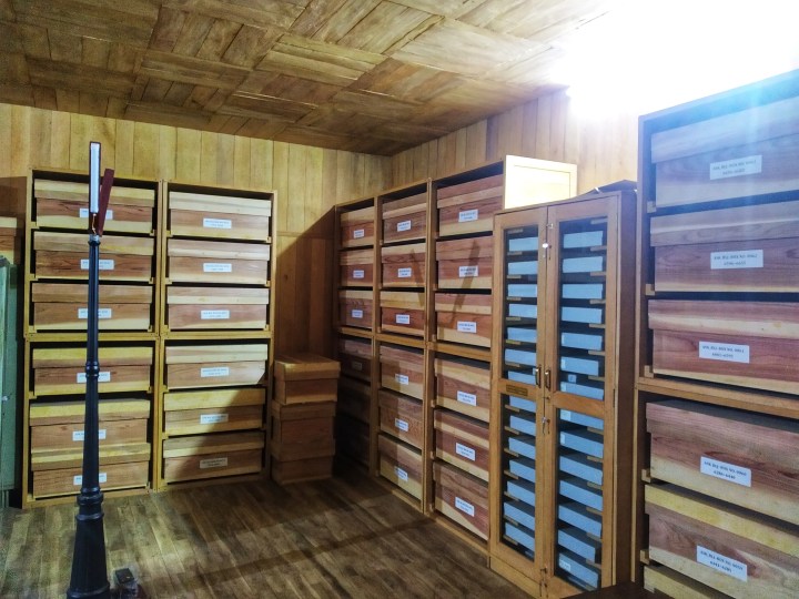 Palm leaf land grant documents cataloged and stored in the temperature-monitored wooden enclosure