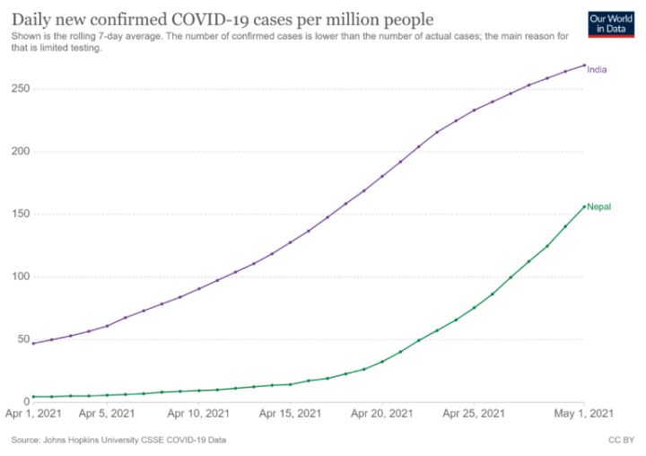 As the global community watches in horror the continuing Covid-19 tragedies in India, it must take note of what’s happening across the border in Nepal, where the virus has been spreading at a far greater rate in April than in India, and so far in May. Indeed, it’s time for the global community to proactively come together and pre-empt in Nepal what has happened in India.