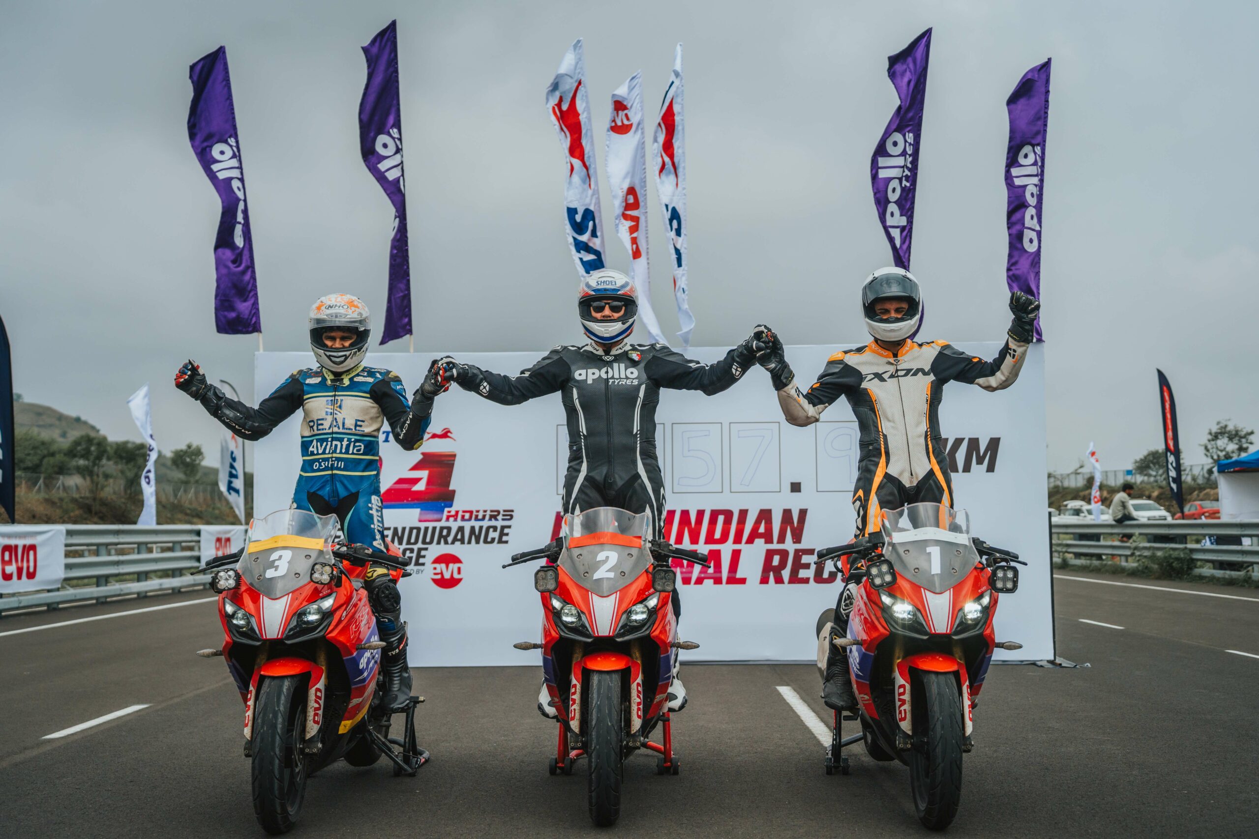 TVS Apache 310, shod with Apollo Alpha H1 tyres, has set a new record in the 24-hour Indian National Speed Endurance, achieving a milestone of 3657.92 km at Asia’s longest high speed track, according to the company. “The riders covered a total of 322 laps, at an average speed 152 km/hr while setting a record.”