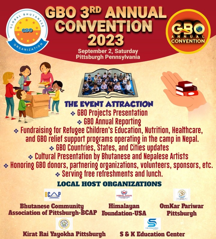 The convention will take place on 2 September 2023, according to the organizer. The event will be hosted jointly by the Bhutanese Community Association of Pittsburgh-BCAP, Himalayan Foundation-USA, Omkar Pariwar Pittsburgh, Kirat Rai Yayokha Pittsburh, S & K Education Center in collaboration with the other local organizations.